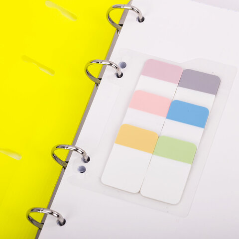Закладки BRAUBERG PASTEL всегда под рукой благодаря их специальному креплению, которое идеально подходит для использования вместе с тетрадью на кольцах.