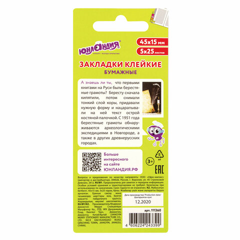 Клейкие закладки ЮНЛАНДИЯ с привлекательным дизайном акцентируют внимание на важных страницах книги или журнала. Крепятся к любой поверхности, сохраняют свои свойства даже при многократном применении.