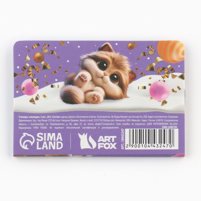 Закладки с клеевым краем бумажные, deVENTE Cat&Ice cream, дизайн 55 х 71мм, 15 х 50мм, 5 цветов по 20 листов