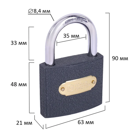 Размеры замка: ширина 63 мм, высота 90 мм, толщина 21 мм.