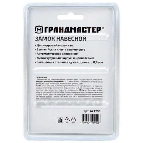 Замок навесной ГРАНДМАСТЕР с цилиндровым механизмом секретности предназначен для запирания дверей, гаражных ворот, складов и других помещений. Достаточно прост по конструкции и надёжен в повседневной эксплуатации.