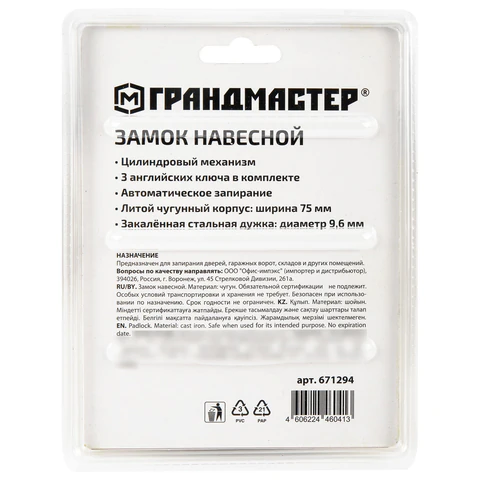 Замок навесной ГРАНДМАСТЕР с цилиндровым механизмом секретности предназначен для запирания дверей, гаражных ворот, складов и других помещений. Достаточно прост по конструкции и надёжен в повседневной эксплуатации.