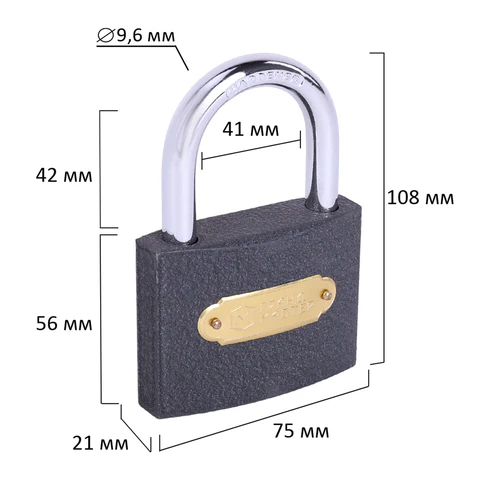 Размеры замка: ширина 75 мм, высота 108 мм, толщина 21 мм.