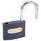 Замок навесной имеет литой чугунный корпус и оснащен полукруглой дужкой из закаленной стали, что делает его прочным и увеличивает сопротивляемость к взлому. Тип механизма секретности – цилиндровый. Три английских ключа в комплекте. Замок запирается автоматически (без использования ключа) при нажатии на дужку сверху, что облегчает его эксплуатацию.