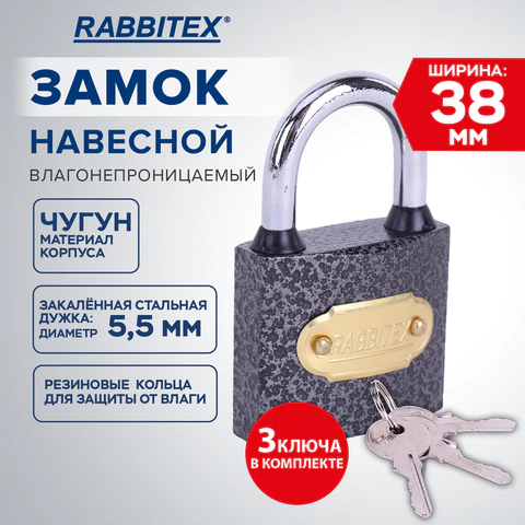 Замок навесной RABBITEX с цилиндровым механизмом секретности предназначен для запирания дверей, распределительных щитков, почтовых ящиков. Достаточно прост по конструкции и надёжен в повседневной эксплуатации.