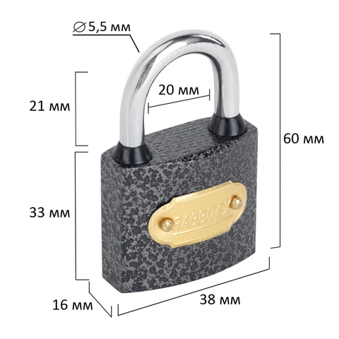 Размеры замка: ширина 38 мм, высота 60 мм, толщина 16 мм.