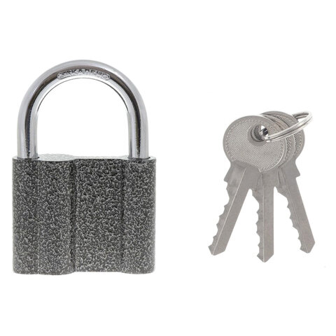 Замок навесной, ширина 70 мм, чугун, дужка d-10 мм, английский, 3 ключа, СИБРТЕХ, ЗН2-М1, 91612