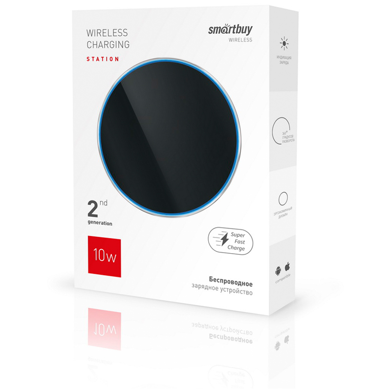 Беспроводное зарядное устройство для смартфонов с поддержкой Qi. Подходит для беспроводной подзарядки аккумулятора смартфонов (необходим совместимый смартфон). Индукционный способ зарядки. Мощность беспроводной зарядки может достигать 10 Вт. Подходит для устройств с поддержкой быстрой беспроводной зарядки, например, Samsung Galaxy S10.