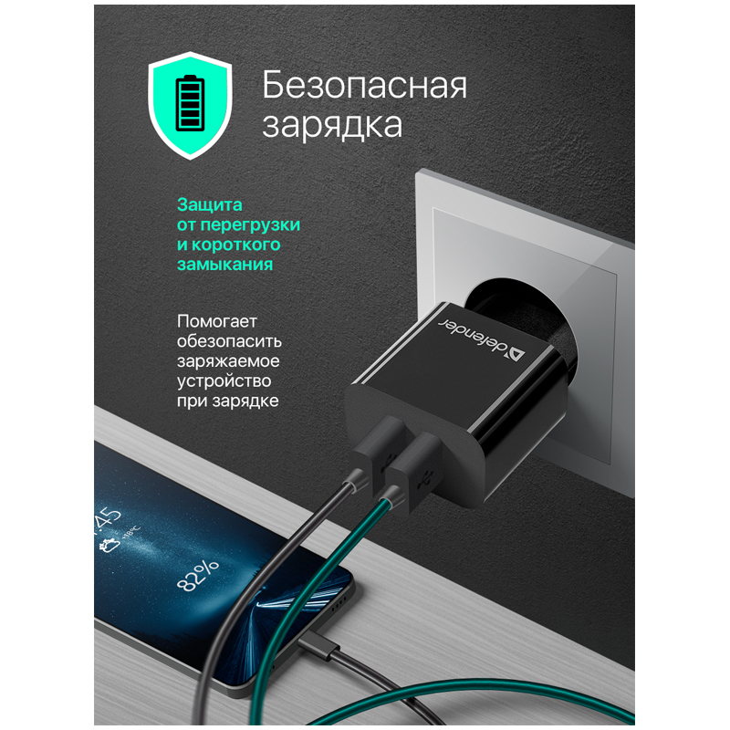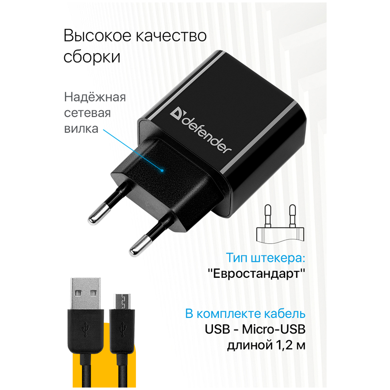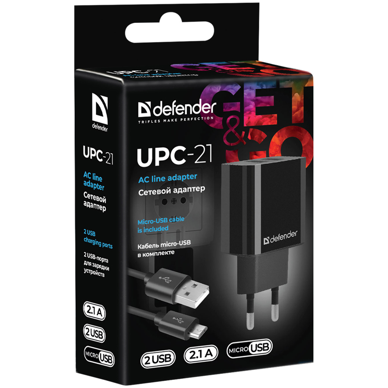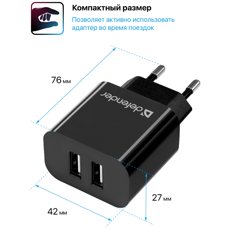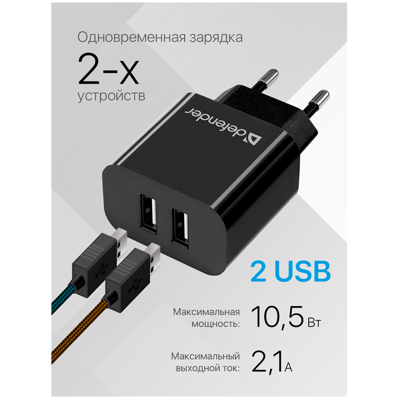 Зарядное устройство сетевое Defender UPA-22 белый, 2xUSB, 2.1А output, черный