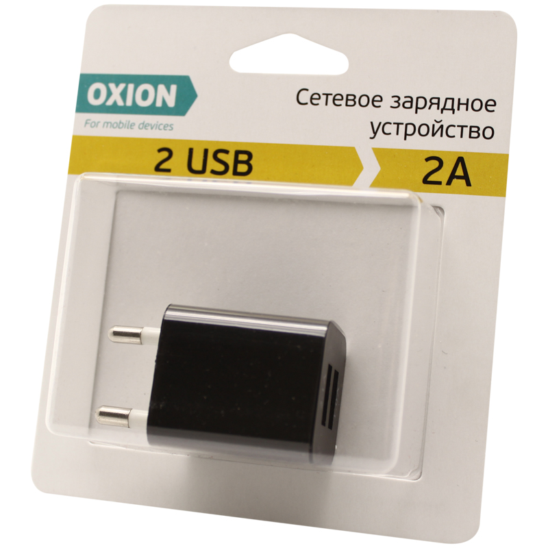 Сетевое зарядное устройство Oxion, 2.1A output, черный. Выходной ток: 2000mA. Упакован в блистер.