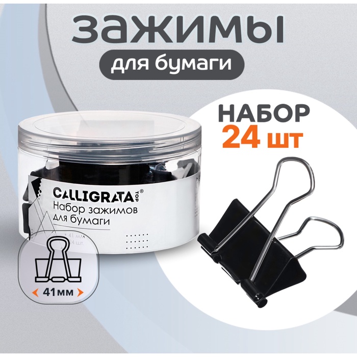 Набор зажимов для бумаг черных 41мм 24 штук, в пластиковой тубе