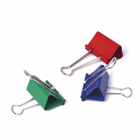 Зажимы для бумаг STAFF ECO, КОМПЛЕКТ 12 шт, 25 мм, на 100 листов, цветные, картонная коробка, 274038