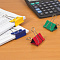Изготовлены из стали с цветным покрытием. Позволяют скреплять до 230 листов. Не деформируют бумагу. Ширина зажима - 51 мм. Поставляются по 12 штук в пластиковом цилиндре.