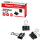 Изготовлены из стали с черным покрытием. Позволяют скреплять до 100 листов. Не деформируют бумагу. Ширина зажима - 25 мм. Поставляются по 12 штук в картонной коробке.