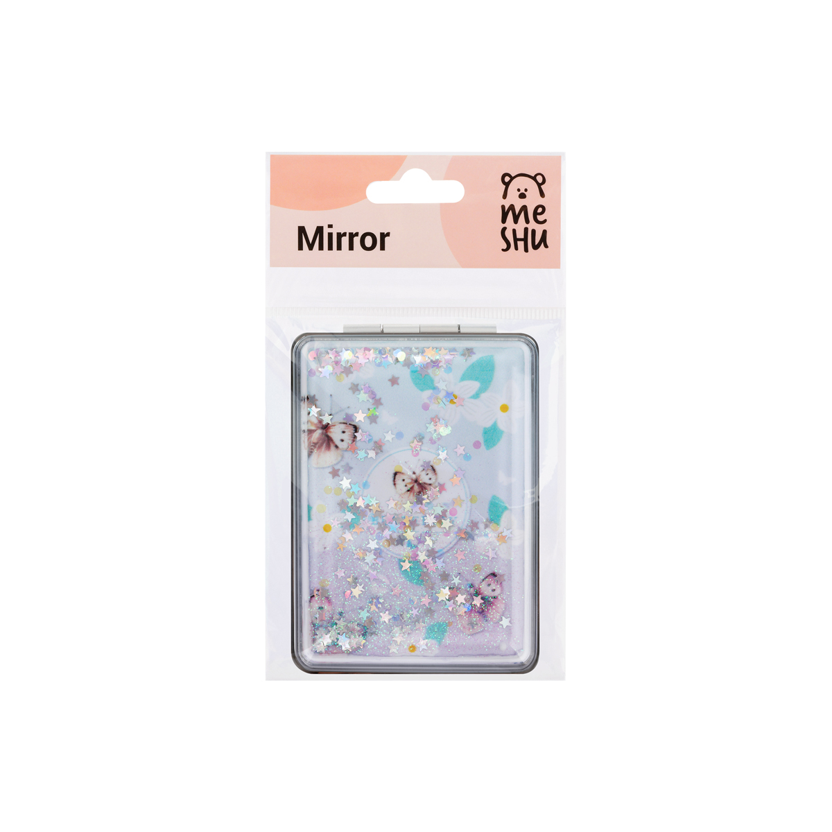 Компактное и легкое зеркало MESHU – стильный, красивый и полезный аксессуар, необходимый любой девушке. Нежный дизайн с сияющим глиттером непременно понравится обладательнице. Изделие упаковано в пакет с европодвесом.