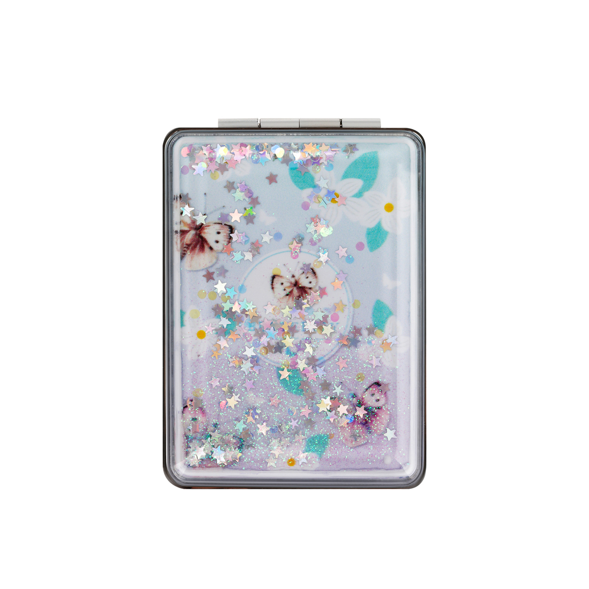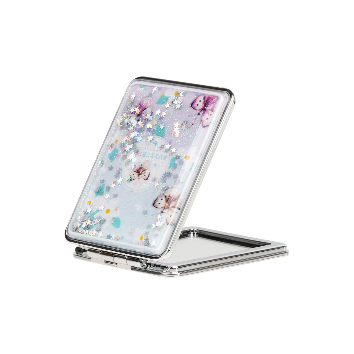 Зеркало карманное складное MESHU Butterflies — необходимый аксессуар, который поможет выглядеть идеально везде: на работе и учëбе, в путешествии и на вечеринке. Благодаря компактному размеру 70*70 мм ему найдется место даже в самой маленькой сумочке.<br/>Зеркало изготовлено из качественного пластика и стекла. Модель складывается и состоит из двух зеркал: одно обеспечивает стандартное отражение, второе – с двукратным увеличением.<br/>Компактное и легкое зеркало MESHU – стильный, красивый и полезный аксессуар, необходимый любой девушке. Нежный дизайн с сияющим глиттером непременно понравится обладательнице. Изделие упаковано в пакет с европодвесом.<br/>• Размер: 70*70 мм;<br/>• Складная конструкция: да;<br/>• Увеличительное: да