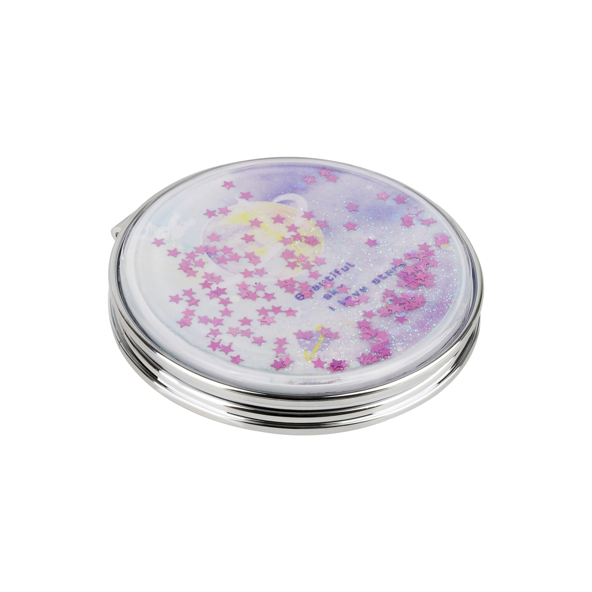 Зеркало карманное складное MESHU Cosmic shine — необходимый аксессуар, который поможет выглядеть идеально везде: на работе и учëбе, в путешествии и на вечеринке. Благодаря компактному размеру 70*70 мм ему найдется место даже в самой маленькой сумочке.<br/>Зеркало изготовлено из качественного пластика и стекла. Модель складывается и состоит из двух зеркал: одно обеспечивает стандартное отражение, второе – с двукратным увеличением.<br/>Компактное и легкое зеркало MESHU – стильный, красивый и полезный аксессуар, необходимый любой девушке. Космический дизайн с сияющим глиттером непременно понравится обладательнице. Изделие упаковано в пакет с европодвесом.<br/>• Размер: 70*70 мм;<br/>• Складная конструкция: да;<br/>• Увеличительное: да