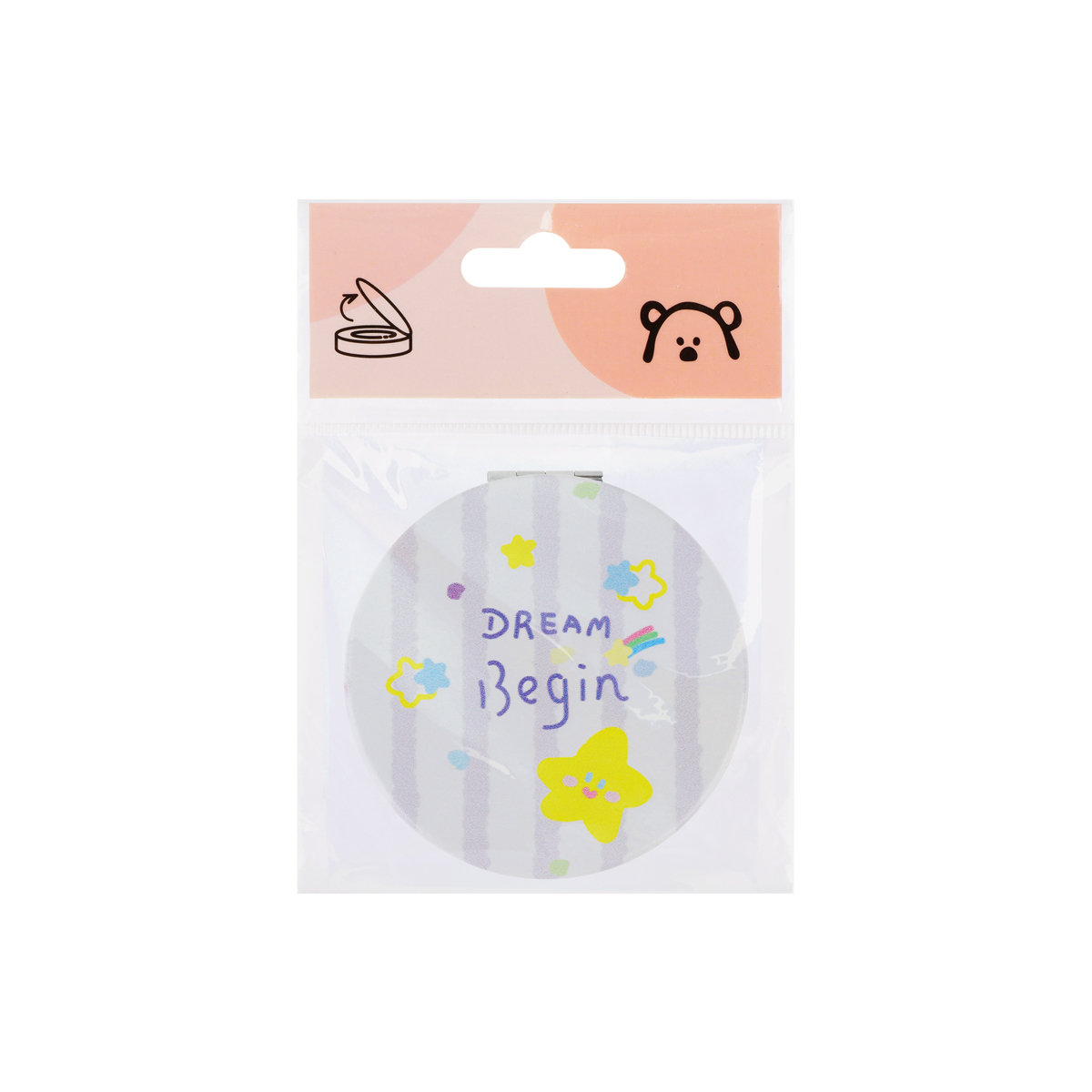 Зеркало карманное складное MESHU Dream begin — необходимый аксессуар, который поможет выглядеть идеально везде: на работе и учëбе, в путешествии и на вечеринке. Благодаря компактному размеру 70*70 мм ему найдется место даже в самой маленькой сумочке.<br/>Зеркало изготовлено из качественного пластика и стекла. Модель складывается и состоит из двух зеркал: одно обеспечивает стандартное отражение, второе – с двукратным увеличением.<br/>Компактное и легкое зеркало MESHU – стильный, красивый и полезный аксессуар, необходимый любой девушке. Яркий и милый дизайн непременно понравится обладательнице. Изделие упаковано в пакет с европодвесом.<br/>• Размер: 70*70 мм;<br/>• Складная конструкция: да;<br/>• Увеличительное: да
