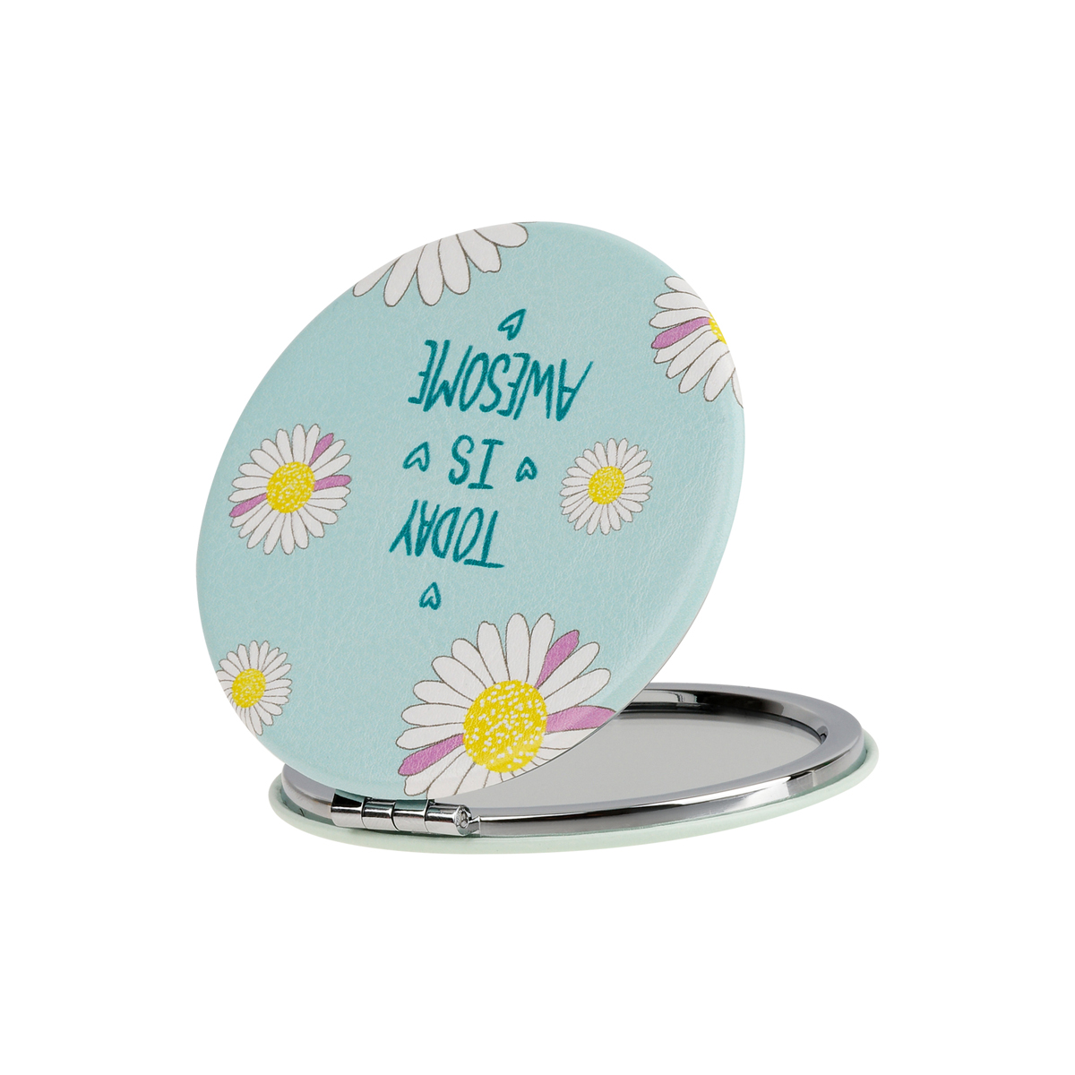 Зеркало карманное складное MESHU Today is awesome — необходимый аксессуар, который поможет выглядеть идеально везде: на работе и учëбе, в путешествии и на вечеринке. Благодаря компактному размеру 70*70 мм ему найдется место даже в самой маленькой сумочке.