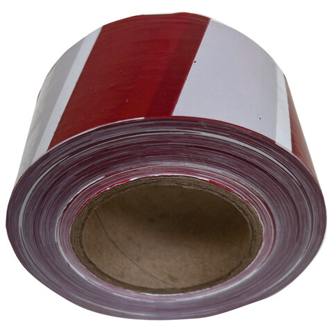 Лента сигнальная красно-белая, 75 мм х 200 м, BRAUBERG "Грандмастер", основа полиэтилен, 604892