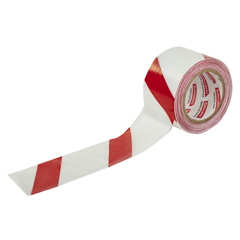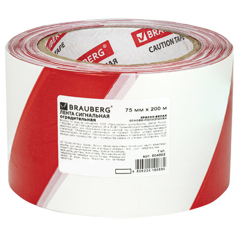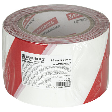 Лента сигнальная красно-белая, 50 мм х 200 м, BRAUBERG "Грандмастер", основа полиэтилен, 604890