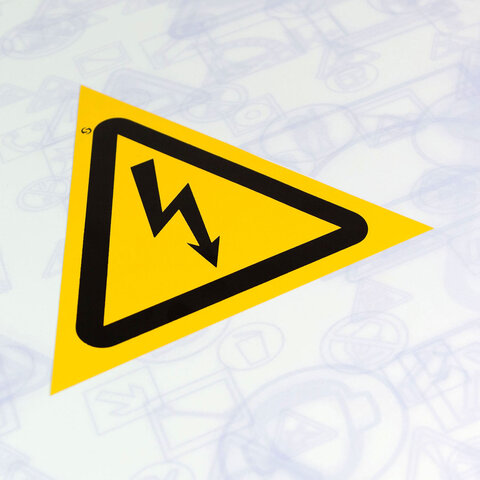 Предупреждающий знак безопасности (наклейка) «Опасность поражения электрическим током». Место размещения (установки) и рекомендации по применению: на опорах линий электропередачи, электрооборудовании и приборах, дверцах силовых щитков, на электротехнических панелях и шкафах, а также на ограждениях токоведущих частей оборудования, механизмов, приборов.