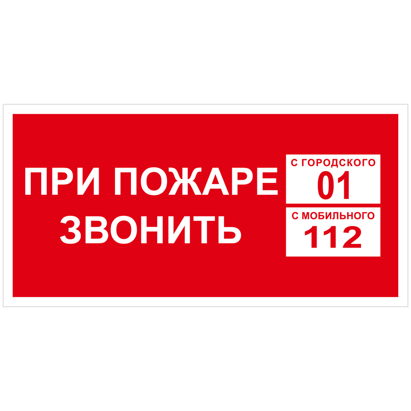 Знак пожарной безопасности OfficeSpace "При пожаре звонить 01", 150*300мм, самоклейка