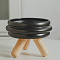 Набор мисок керамических на подставке, 2 х 400 мл, подставка 27 х 7/10 см, белый/черный