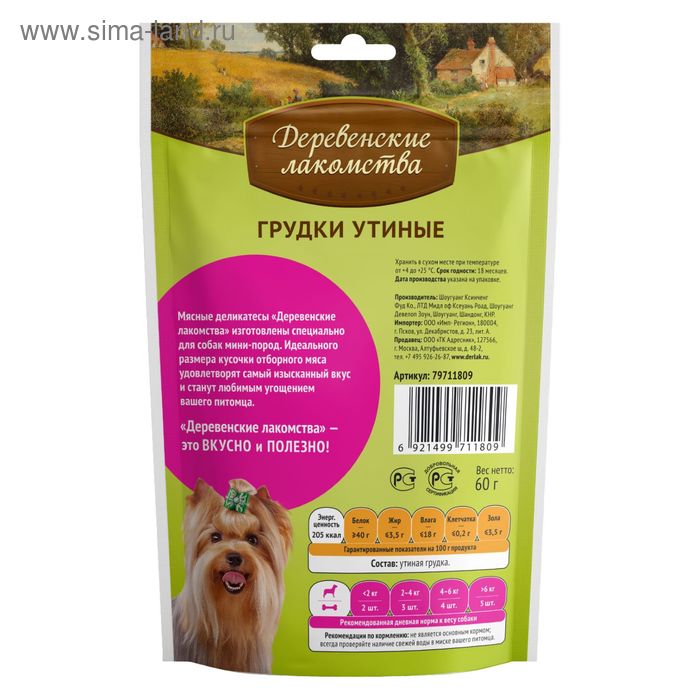 Утиные грудки "Деревенские лакомства" для собак мини-пород, 55 г