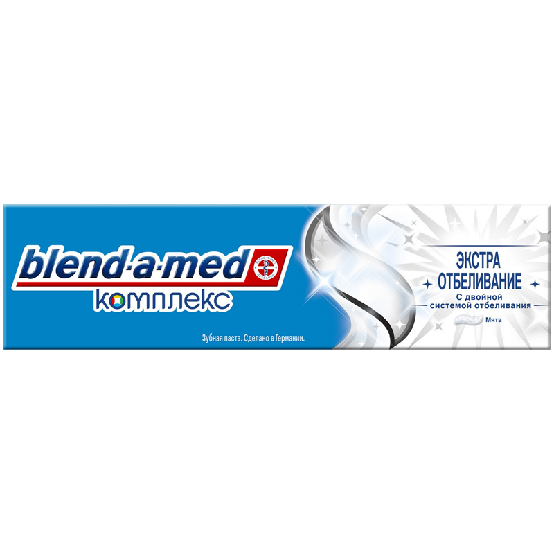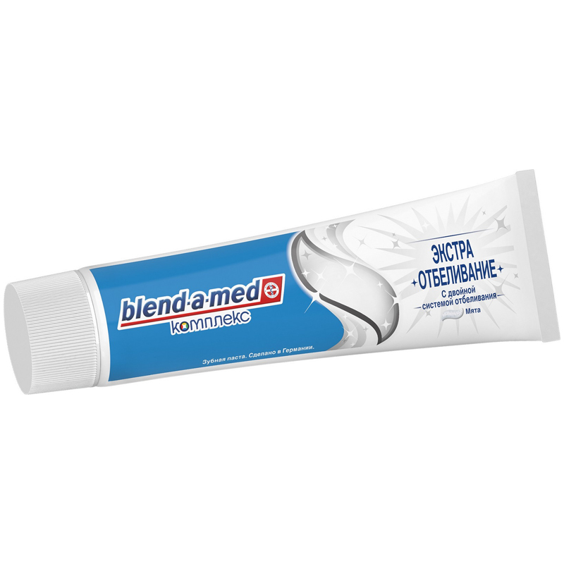 Зубная паста Blend-a-med Комплекс Экстра Отбеливание обеспечивает чистоту всей полости рта и содержит двойную систему отбеливания для красивой улыбки и длительной свежести дыхания. Паста содержит 2 типа отбеливающих гранул, которые удаляют налет, гарантируя белизну вашей улыбки.<br/>• Очищает в труднодоступных местах<br/>• С двойной системой отбеливания<br/>• Длительная свежесть<br/>• Предотвращает образование зубного камня<br/>• Предотвращает развитие кариеса<br/>• Мятный вкус