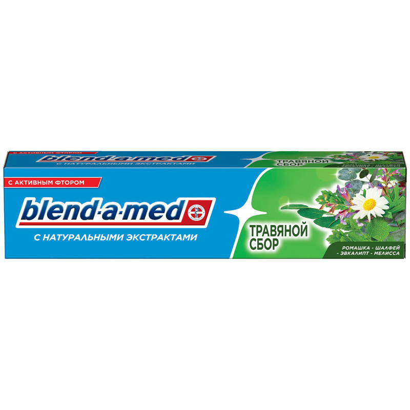 Зубная паста blend-a-med С натуральными экстрактами ромашки, шалфея, эвкалипта и мелиссы помогает поддерживать здоровье зубов и десен.