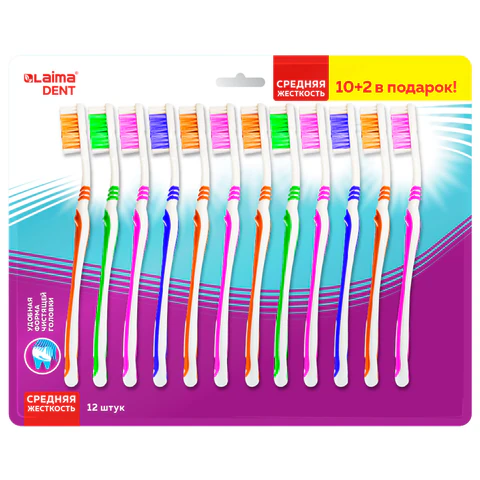 Зубная щетка средней жесткости, КОМПЛЕКТ 12шт (10+2 в подарок), LAIMA DENT, 609689
