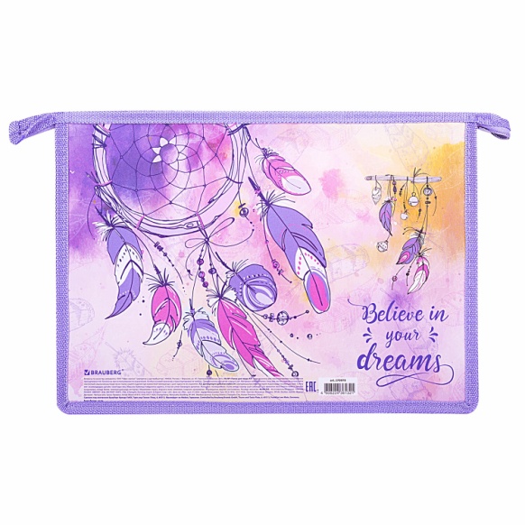 Папка для труда на молнии BRAUBERG А4, 2 отделения, органайзер, "Dreamcatcher", 270978