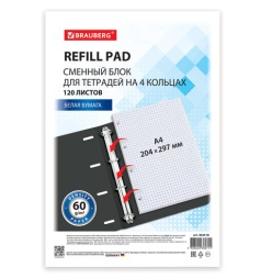 Сменный блок к тетради на кольцах БОЛЬШОГО ФОРМАТА А4, 120 л., BRAUBERG, Белый,