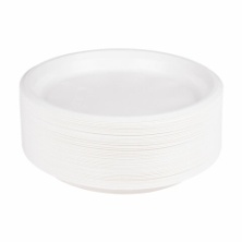 Одноразовые тарелки плоские, КОМПЛЕКТ 100 шт., пластик, d=220 мм, БЮДЖЕТ, белые, ПС, холодное/горяче