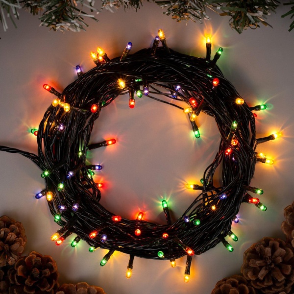 Гирлянда «Нить» 7 м, IP20, тёмная нить, 100 ламп, свечение мульти, 8 режимов, 220 В