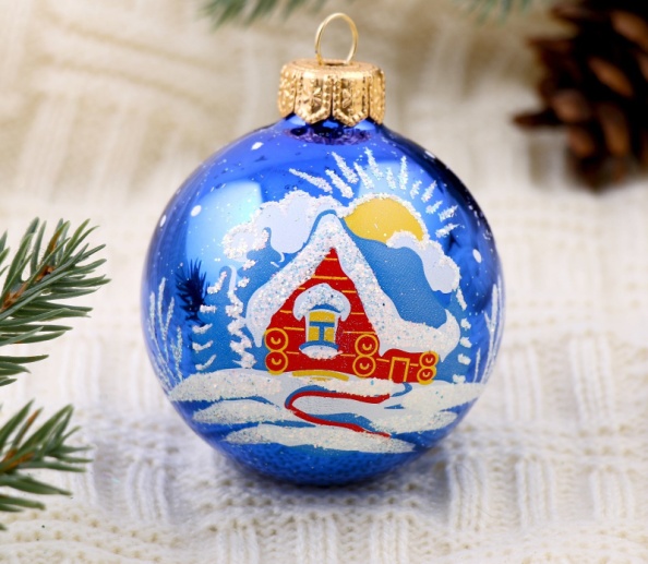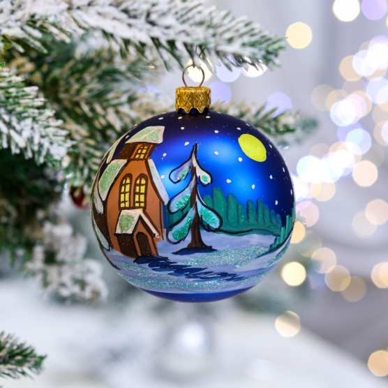 Ёлочная игрушка Шар "Рождественская ночь", 80 мм, стекло, ручная роспись