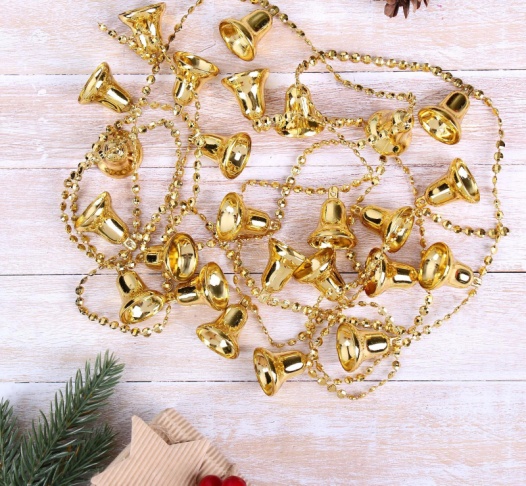 Бусы на ёлку 2,7 м "Колокольчики узорные" микс