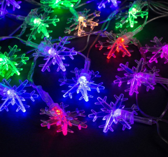 Гирлянда «Нить» 5 м с насадками «Снежинки большие», IP20, прозрачная нить, 20 LED, свечение мульти (RG/RB), мигание, 220 В