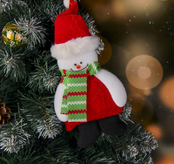 Мягкая подвеска "Снеговик в полосатом шарфике" 9*20 см красный