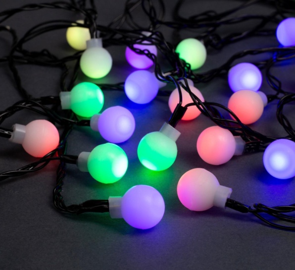 Гирлянда «Нить» 5 м с насадками «Шарики белые», IP20, тёмная нить, 20 LED, свечение мульти (RG/RB), мигание, 220 В