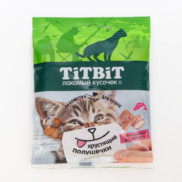 Хрустящие подушечки TitBit для кошек, с паштетом из лосося, 30 г