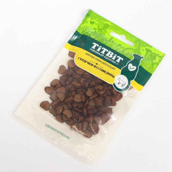 Мягкие снеки TitBit для кошек, сердечки из говядины, 40 г