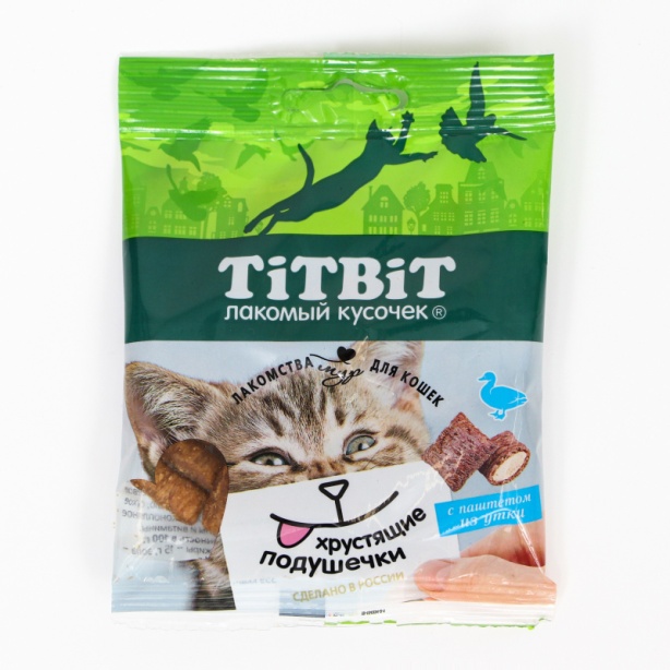 Хрустящие подушечки TitBit для кошек, с паштетом из утки, 30 г