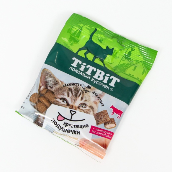 Хрустящие подушечки TitBit для кошек, с паштетом из говядины, 30 г