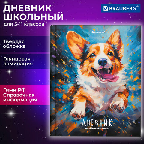 Дневник 5-11 класс 48 л., твердый, BRAUBERG, глянцевая ламинация, с подсказом, "Милый корги", 106877