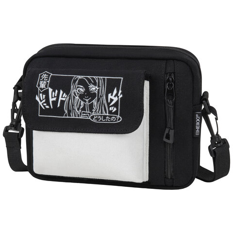 Сумка на плечо HEIKKI TORRENT (ХЕЙКИ) с карманом, Anime face, черная, 25х18х3 см, 272637