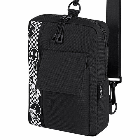 Сумка на плечо HEIKKI TORRENT (ХЕЙКИ) с карманом, Chess emoji, черная, 25х18х3 см, 272638