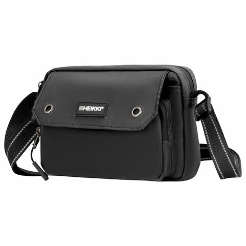 Сумка на плечо HEIKKI BLASTER (ХЕЙКИ) с карманом, черная, 20х14х5 см, 272634
