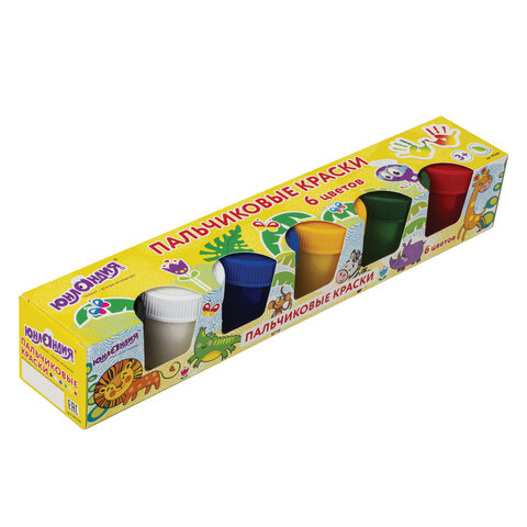 Краски пальчиковые ЮНЛАНДИЯ "САФАРИ", 6 цветов по 35 мл, в баночках, ВЫСШЕЕ КАЧЕСТВО, 191339